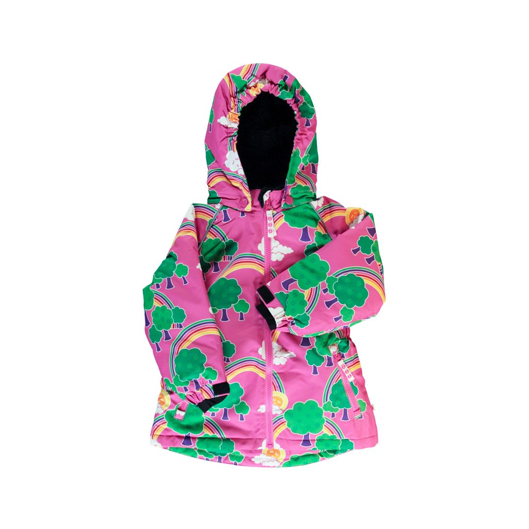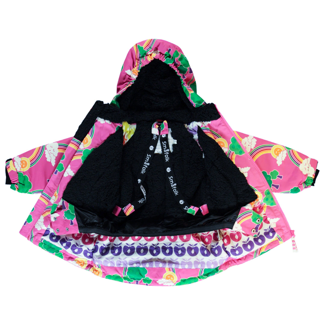 カラフルなレインボープリントが目を惹く、冬にぴったりのあたたかいジャケット。