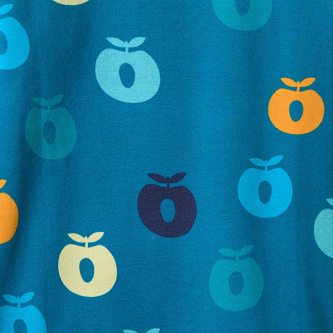 ブランドを象徴するりんごのロゴをモチーフにした、元気いっぱいのカラフルなプリント。
